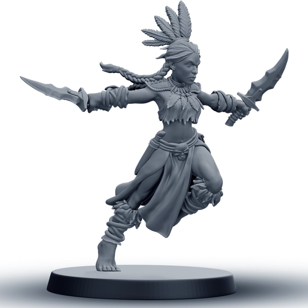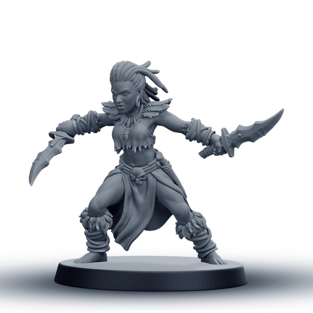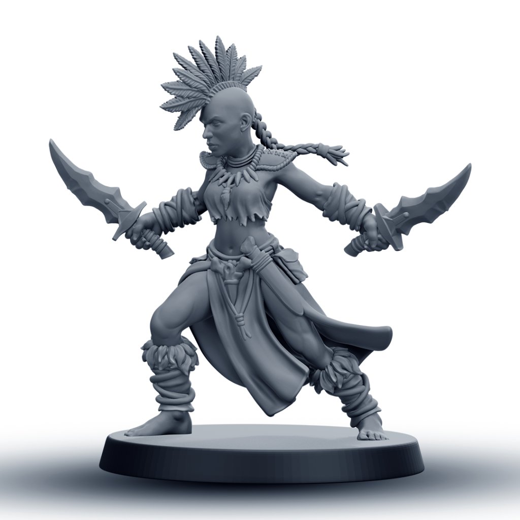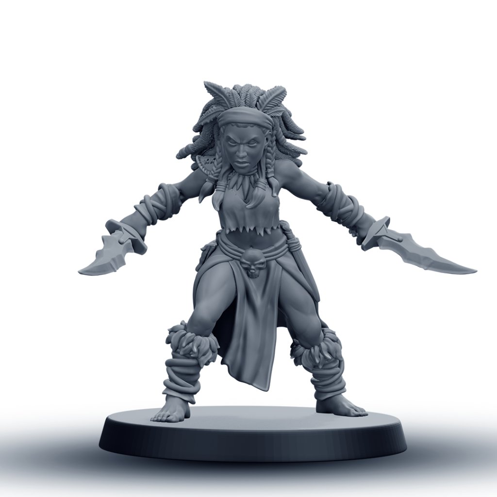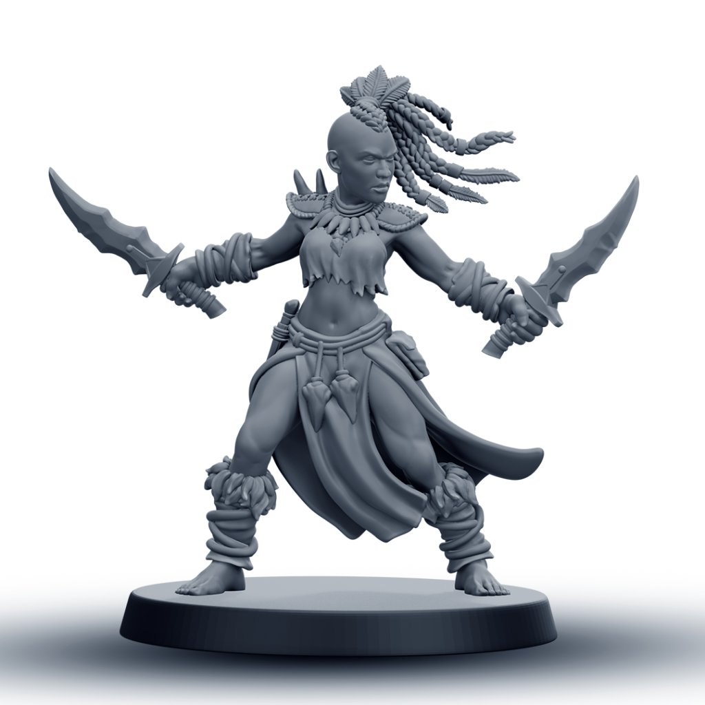 Tato detailně zpracovaná RPG miniatura amazonské bojovnice je vhodná jako hráčská postava, NPC nebo součást jednotky. Model je dostupný v 6 různých variantách, které umožňují sestavit vizuálně rozmanitou skupinu pro fantasy nebo skirmish hry.