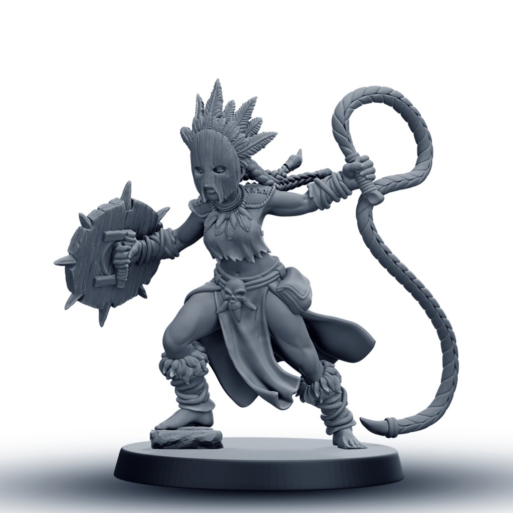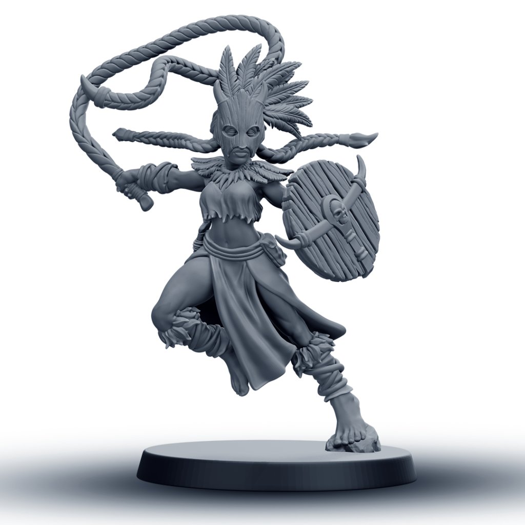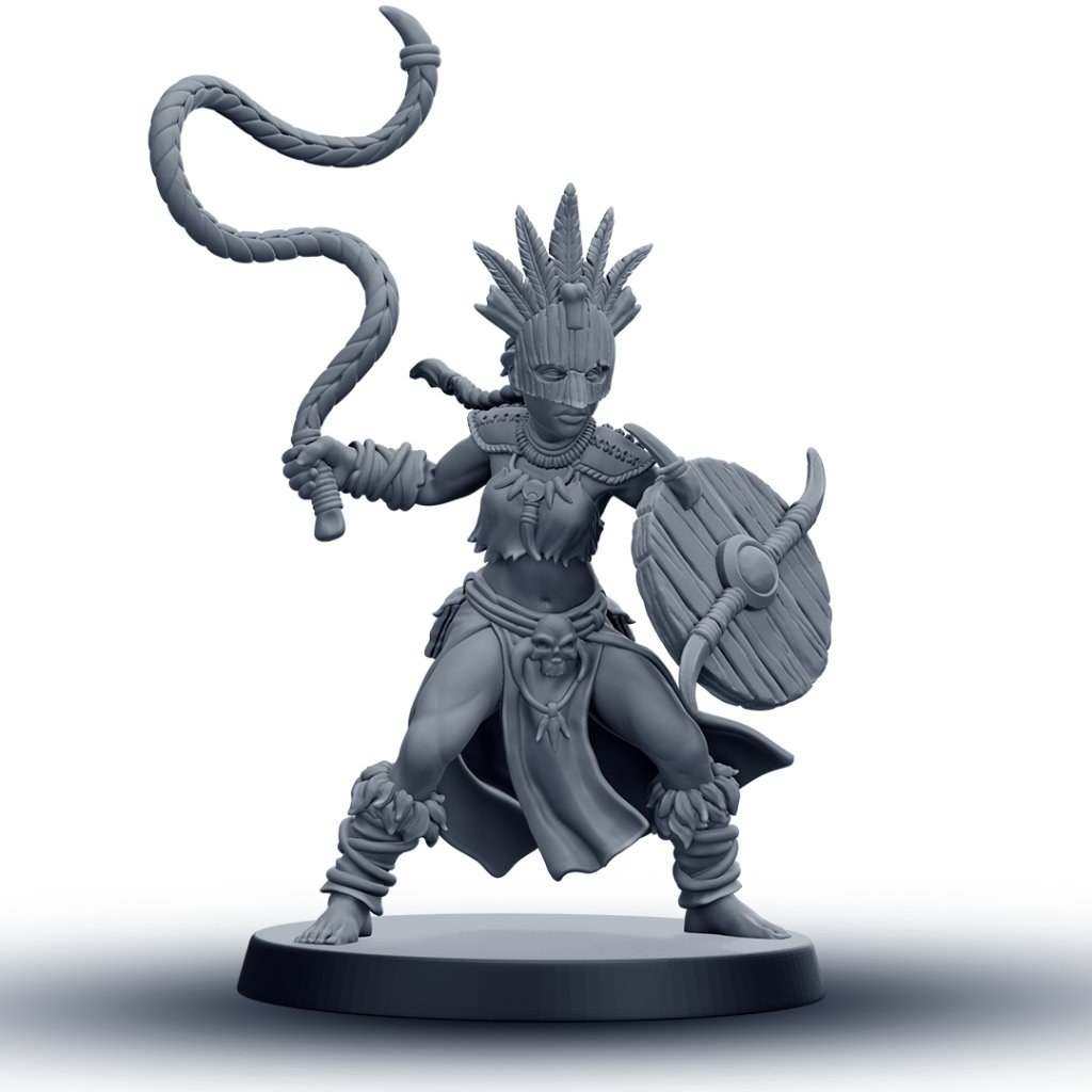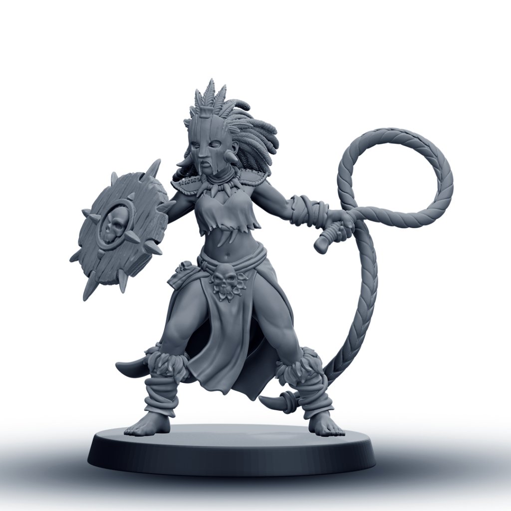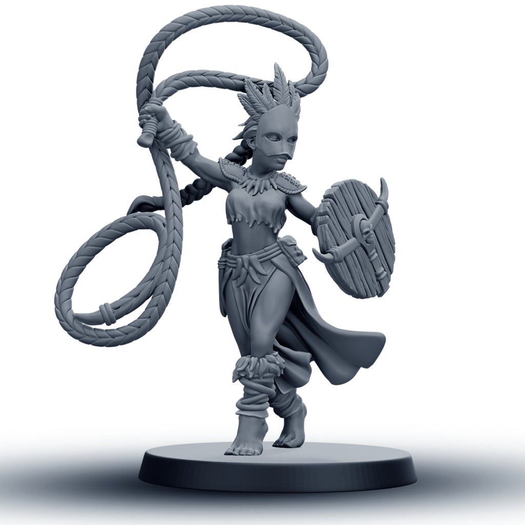 Tato detailně zpracovaná RPG miniatura amazonské bojovnice s bičem je vhodná jako hráčská postava, NPC nebo součást jednotky. Model je dostupný v 6 různých variantách, které umožňují sestavit vizuálně rozmanitou skupinu pro fantasy nebo skirmish hry.