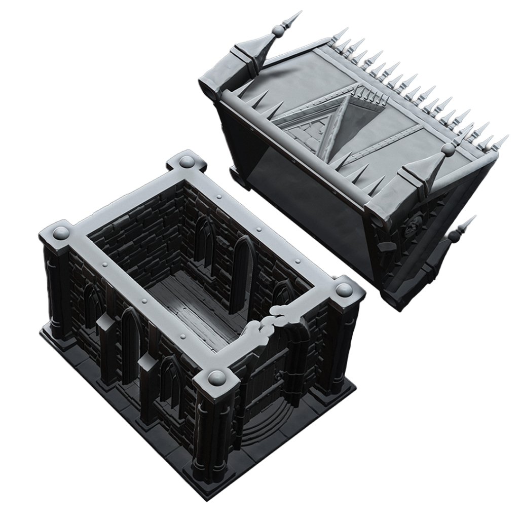 Detailně zpracované střední mausoleum určené jako terénní prvek pro fantasy a RPG hry. Stavba je vhodná pro použití na hřbitovech, v ruinách měst, jako součást chrámových komplexů nebo jako vstup do podzemí.