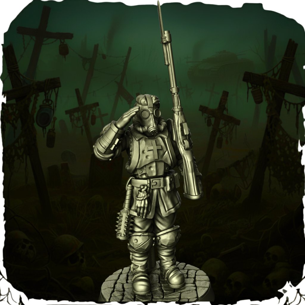 Výrazná grimdark miniatura kompatibilní s pravidly hry Trench Crusade.