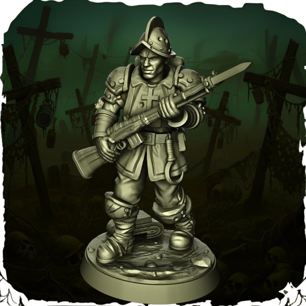 Výrazná grimdark miniatura kompatibilní s pravidly hry Trench Crusade.